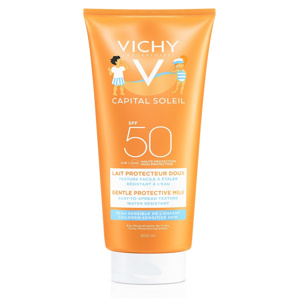 Para combatir los efectos nocivos de los rayos UV y proteger el preciado capital genético de la piel, Vichy integra a la Leche solar Niños un sistema filtrante fotoestable de amplio espectro UVA-UVB a base de Mexoryl®.